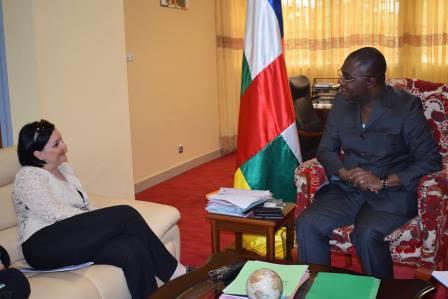l'ambassadrice de l'UE, Samuela Isopi et le ministre centrafricain des finances, Henri Marie Dondra@Presse finances