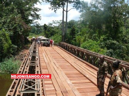 Le pont posé à Libo était celui construit dans le 6ème arrondissement de Bangui en 2015 par la Sangaris afin de relier les quartiers Petevo et Sapeke. Le coût global du transfert et des travaux s’élève à près de 20 millions de FCFA.
