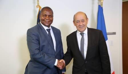 Le président centrafricain, F.A Touadera et le MAE française J. Y L e Drian à l’ONU