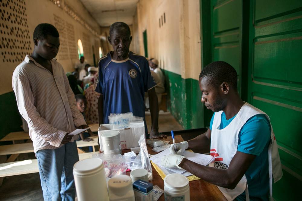 Un agent de MSF consulte les patients