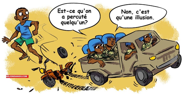 Bangui 10 juin 2019–(Ndjoni Sango): Il y a peu de temps un accident s’est produit à Bria, où des casques bleus de la MINUSCA ont percuté une moto. Selon les témoignages le chauffeur de moto s’est arrêté pour faire passer un convoi de la MINUSCA. Malgré ce fait il s’est quand même fait percuté par l’un des véhicules du convoi, lui infligeant des blessures… Et le convoi ne s’est même pas arrêté pour assister au dernier. Ils ont tout simplement continué leur voyage, croyant que ce crime restera impuni.