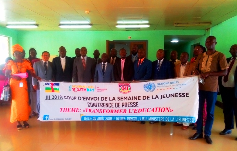 Bangui 6 Août 2019— (Ndjoni Sango): Durant six jours, le gouvernement centrafricain en partenariat avec les agences des nations unies célébrent distinctement la journée internationale de la jeunesse (JIJ) qui prendra fin d’ici le 12 août prochain sous le thème, A Masséka A Zingo. Plusieurs événements sont au programme dont l’inauguration de la maison des jeunes du 2ème arrondissement construite sur l’appui des partenaires au développement.