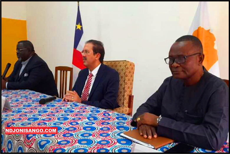 Les représentants de CNOSCA et ACNOA au cours d'une conférence de presse à Bangui @photo Fiacre Salabé