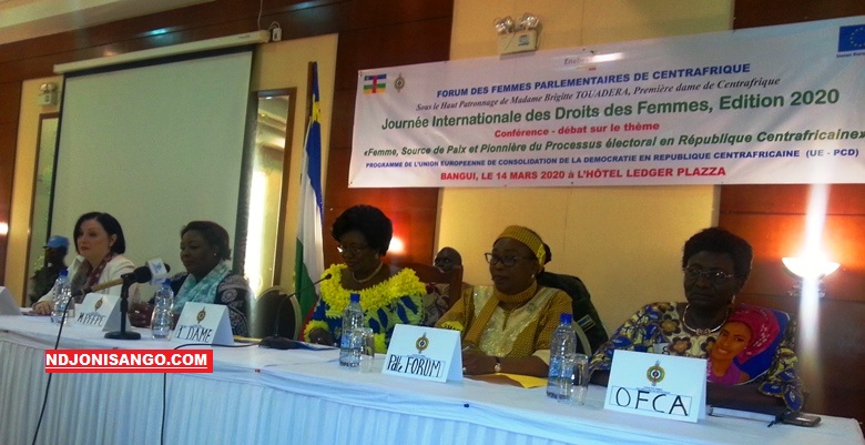 Bangui 16 mars 2020—(Ndjoni Sango) : Dans le cadre de la célébration de la journée internationale de la femme sur le thème, la participation des femmes à la consolidation de la paix et au processus électoral en République centrafricaine, le forum des femmes parlementaires organise un atelier de réflexion sur l’engagement et la participation des femmes centrafricaines en milieu politique. Cet atelier de réflexion organisé par le forum des femmes parlementaires qui a réuni des centaines des femmes leaders venues de différentes organisations féminines, a connu son succès grâce à l’appui technique et financier de l’agence du développement Belge (ENABEL), en partenariat avec l’Union européenne (UE).