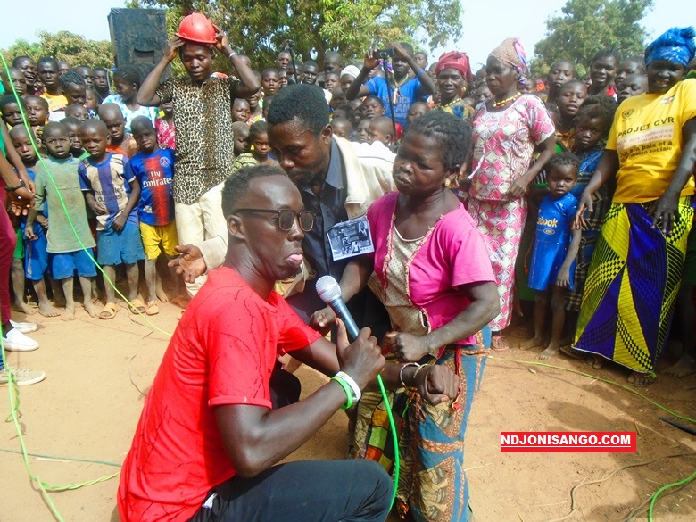 Bangui 24 mars 2020—(Ndjoni-Sango) : L’artiste engagé, Dany Ngarasso, dit « bouche autorisée » et son équipe, ont   donné un concert dans la sous-préfecture de Nana Bakassa, à presque 400km de Bangui, du 14 au 18 mars 2020. La lutte contre la rougeole, l’établissement d’Actes de naissance et   l’enrôlement des enfants dans les groupes armés, ont fait le menu de ce concert. Sous une forte mobilisation, ce concert s’est déroulé dans les villages  kouki, Bowara, Kaboro, Gbago. Et dans les villes de Nana Bakassa centre et à Bossangoa. Une initiative de Roland Achille Bangué Betangai député de la circonscription de Nana Bakassa 1.