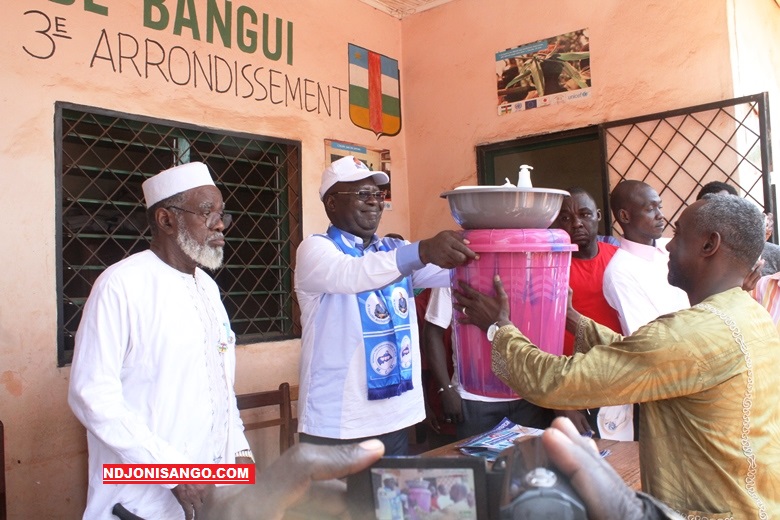 « je peux vous dire que cette initiative est l’exécution des instructions du Chef de l’Etat Faustin Archange Touadéra, demandant à tous les citoyens de respecter les consignes fermes, données par les communautés médicales pour éviter le Coronavirus qui sévit en ce moment dans le monde entier. Et au niveau de notre parti politique, nous avons pris la décision de mettre à la disposition des habitants de Bangui et ses périphéries, des kits d’hygiène, composés des sceaux et savons liquides pour que nos populations puissent pratiquer les consignes données en se lavant régulièrement les mains. Cette distribution sera élargie pour couvrir toute l’étendue du territoire et j’ose espérer que les centrafricains feront bon usage de ces matériels », a-t-il déclaré.
