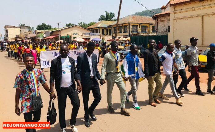 Bangui 22 avril 2025 (Ndjoni Sango) : L’élan population en faveur d’une nouvelle candidature du Président Faustin-Archange TOUADERA continue de prendre de l’ampleur. Ce samedi, des centaines de jeunes issus d’organisations estudiantines, scolaire et du Conseil Consultatif de la Jeunesse ont organisé une grande mobilisation dans les rues de Bangui pour exprimer leur soutien au Chef de l’Etat en lui demandant officiellement de se présenter à l’élection présidentielle de décembre 2025.