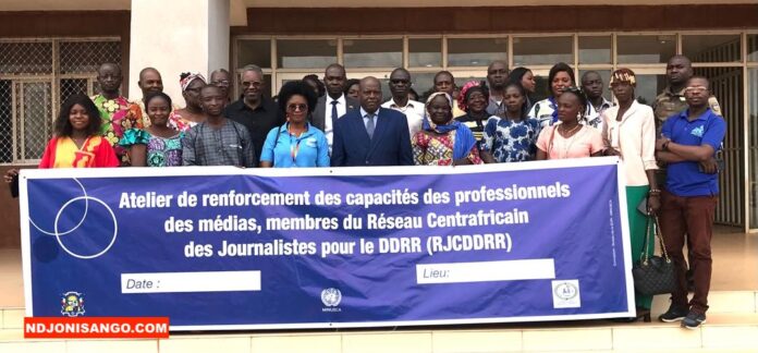 Bangui 19 juin 2025 — (Ndjoni Sango) Mercredi 18 juin 2025 à Bangui, un atelier stratégique de renforcement des capacités des journalistes centrafricains, membres du Réseau des Journalistes pour le DDRR (RJCDDRR), a été organisé par le ministère en charge du DDRR, l’Unité d’Exécution du PNDDRR (UEPNDDRR) et la MINUSCA, sur une communication fiable et engagée en faveur de la consolidation de la paix en Centrafrique.