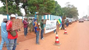 Armés de sifflets, de banderoles et de pancartes révélatrices : « MINUSCA = exploitation abusive sans contrat, 8 ans de travail journalier », « Non aux licenciements abusifs et à la maltraitance ».