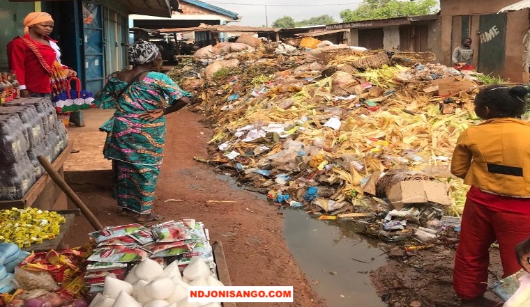 Sur place, les commerçantes et clients se fraient un chemin étroit entre les tas de déchets mêlés de restes alimentaires, emballages plastiques et détritus en tout genre. À certains endroits, les eaux stagnantes aggravent le risque sanitaire et dégagent une odeur nauséabonde difficilement supportable.