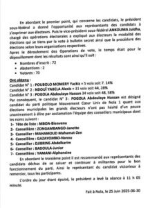L’année 2025 s’annonçait décisive pour POGOLA Abdoulaye Hassane, avec le désir exprimé par la population de Nola1 de le voir devenir candidat aux élections législatives sous la bannière du MCU. Le processus de désignation, régulé par des primaires, s’est déroulé le 25 juin 2025. Avec 34 voix, soit 48,58 %, POGOLA a remporté ces primaires, renforçant sa légitimité et son soutien populaire face à ses deux concurrents.