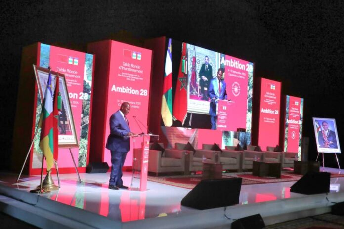 Dans une salle comble réunissant représentants d’institutions financières internationales, investisseurs privés, diplomates, société civile et diaspora centrafricaine, le Chef de l’État a rappelé que Casablanca marquait « le point de départ d’une nouvelle étape de la transformation de la République Centrafricaine».