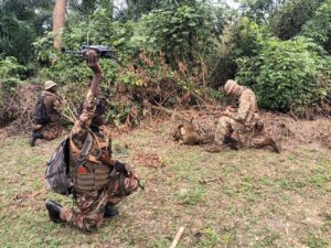 Face à cet échec, les assaillants simulés ont tenté de se replier vers les zones forestières environnantes, où ils ont été rapidement encerclés par des unités des FACA, soutenues par la police et la gendarmerie, dans le cadre d’un dispositif de blocage préventif.