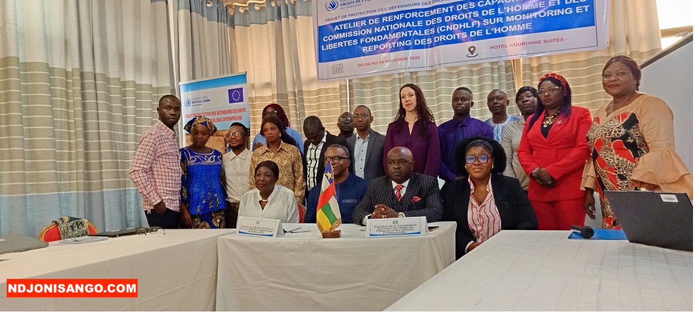 Bangui 4 novembre 2025—(Ndjoni Sango):  Dans l’objectif de permettre aux acteurs de produire de bons rapports et documentations sur la situation des droits humains en République centrafricaine, la division droits de l’Homme de la MINUSCA organise un atelier de renforcement des capacités des membres de la Commission Nationale des Droits de l’Homme et des Libertés Fondamentales sur le monitoring et le reporting. L’atelier se déroule du 4 au 6 novembre dans la salle de conférence de l’hôtel Couronne à Bangui.