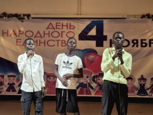 La cérémonie, à la fois solennelle et festive, a réuni les étudiants de la Maison Russe, des représentants de l’ambassade de Russie en RCA, ainsi que des officiels du ministère russe de la Défense. Lors de son allocution, le directeur de la Maison Russe à Bangui, Dimitri Sytyi, a rappelé la portée historique de cette fête nationale, commémorant la libération de Moscou en 1612 et la victoire de l’unité du peuple russe sur la division.
