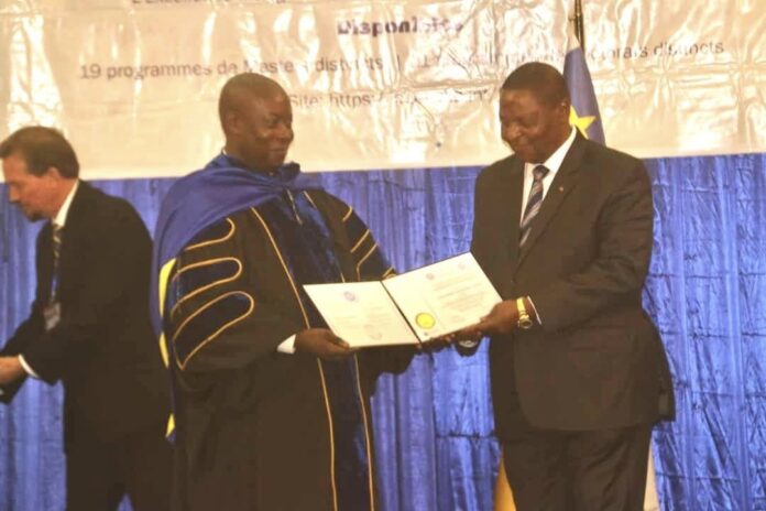 Bangui 10 novembre 2025 – (Ndjoni Sango) : Dans une cérémonie solennelle empreinte de fierté nationale, le Président de la République, Chef Suprême des Armées, Professeur Faustin Archange Touadéra, a remis jeudi 6 novembre 2025 à Bangui le diplôme de Doctorat au Colonel Namboro-Kette Issa Omer, Officier des Forces Armées Centrafricaines (FACA).