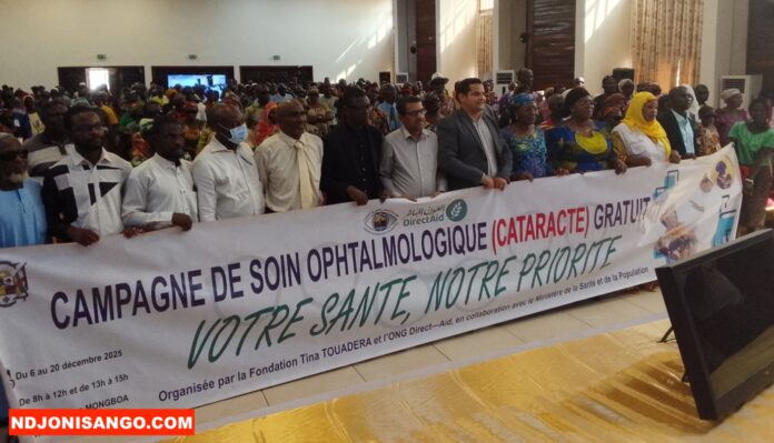 Bangui 18 décembre 2025—(Ndjoni Sango) : Mercredi le 17 décembre 2025 a eu lieu dans la salle de conférence de la Caisse Nationale de Sécurité Sociale (CNSS), la clôture de la campagne ophtalmologique de soin gratuit contre la cataracte, en présence de haut patronage de la Première dame Tina Marguerite Touadera.