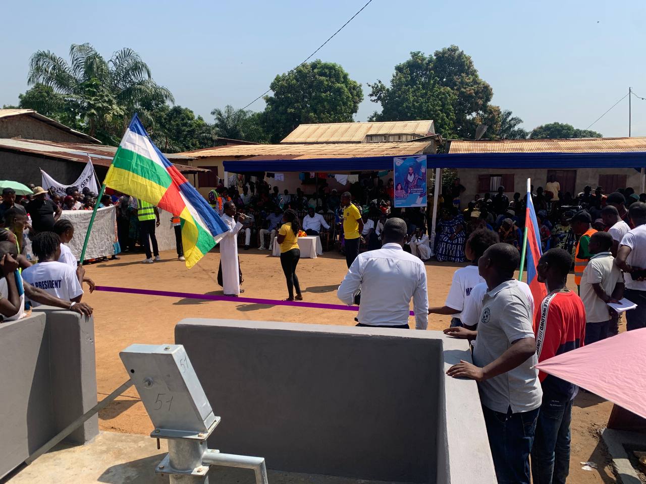 La cérémonie d’inauguration s’est tenue en présence des autorités locales, des notables et d’une forte mobilisation populaire. Le ruban symbolique a été coupé par Isaac Isidore Kobanga, dit Zoda, candidat indépendant aux élections législatives dans la deuxième circonscription du 6ᵉ arrondissement et soutien déclaré du président Touadéra, officialisant ainsi la remise du forage à la communauté.