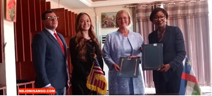 Bangui 26 janvier 2026 — (Ndjoni Sango) : Dans le cadre du renforcement de la coopération bilatérale entre la République centrafricaine (RCA) et les États-Unis d’Amérique, un mémorandum d’échanges commerciaux a été signé le lundi 26 janvier 2026 à Bangui. Cet accord a été paraphé par la ministre centrafricaine des Affaires étrangères, Sylvie Baïpo-Temon Notéfé, et la chargée d’affaires de l’Ambassade des États-Unis en RCA, Mélanie Anne Zimmerman.
