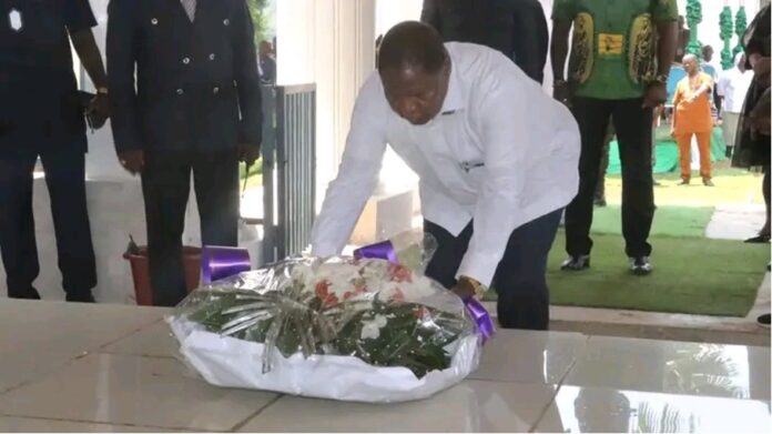 Moment fort de cette commémoration, le Chef de l’État a procédé au dépôt d’une gerbe de fleurs sur la tombe du feu Président André Kolingba, en hommage à sa mémoire et à son parcours à la tête de la République centrafricaine. Le Président Touadéra a également rendu hommage à Désiré Bilal Zanga Kolingba, fils du défunt, ancien ministre de la République centrafricaine.