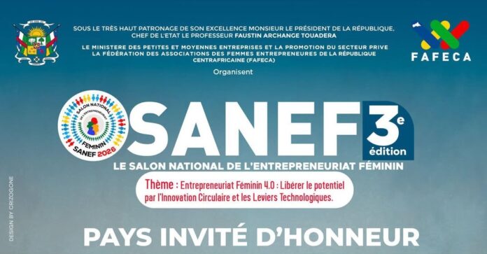 Bangui 20 février 2026—(Ndjoni Sango) : La 3ᵉ édition du SANEF (Salon National de l’Entrepreneuriat Féminin) s’annonce comme un rendez-vous majeur pour la promotion du leadership féminin et de l’innovation économique en République centrafricaine. Car cette année, l’événement met à l’honneur le Maroc, reconnu comme l’un des hubs économiques les plus dynamiques du continent africain, doté d’un écosystème entrepreneurial moderne et orienté vers le digital, l’industrialisation et l’économie verte.
